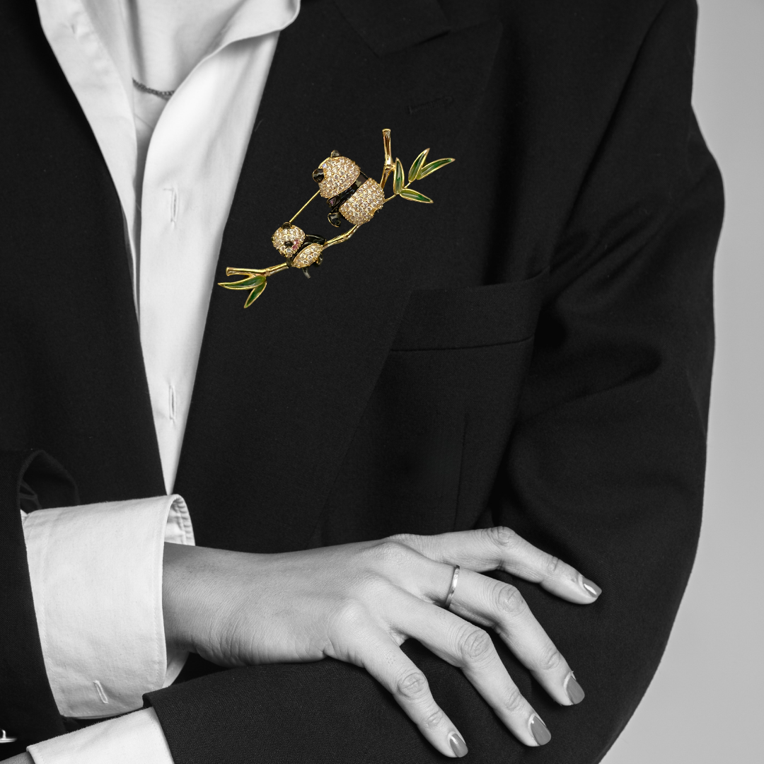 Add a touch of charm with this adorable Panda brooch for women, featuring a panda sitting on a branch. Made with anti-tarnish stainless steel and studded with sparkling American diamonds, this elegant lapel pin is perfect for sarees, suits, or blazers. Ideal gift for weddings, parties, and special occasions.